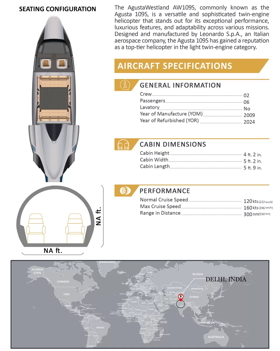 The AW109 Grand features a streamlined, stylish shape and unrivalled elegance in its interior finishes, in addition to advanced avionics.